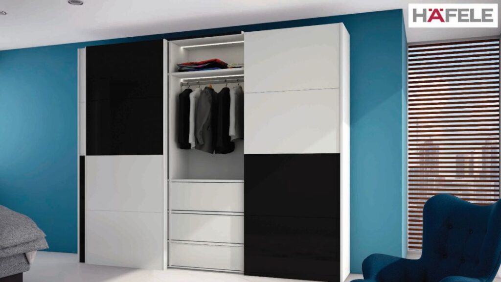 One such masterpiece is Hafele’s Design Duo 80 VF wardrobe sliding system. This vorfront straight sliding system which is available for 2 and 3 doors gives your wardrobes premium aesthetics by enabling multiple wood and glass panel combinations on a single door. Equipped with state-of-the-art technologies like double sided soft close for impact-free operation, and compatible with wave sensor and E-drive, this system sits at the pinnacle of wardrobe sliding technology and is effortless and easy to use.